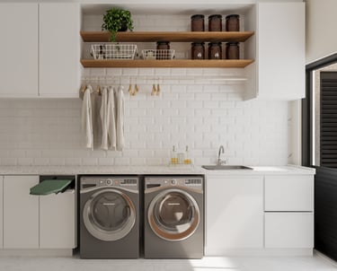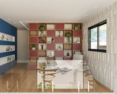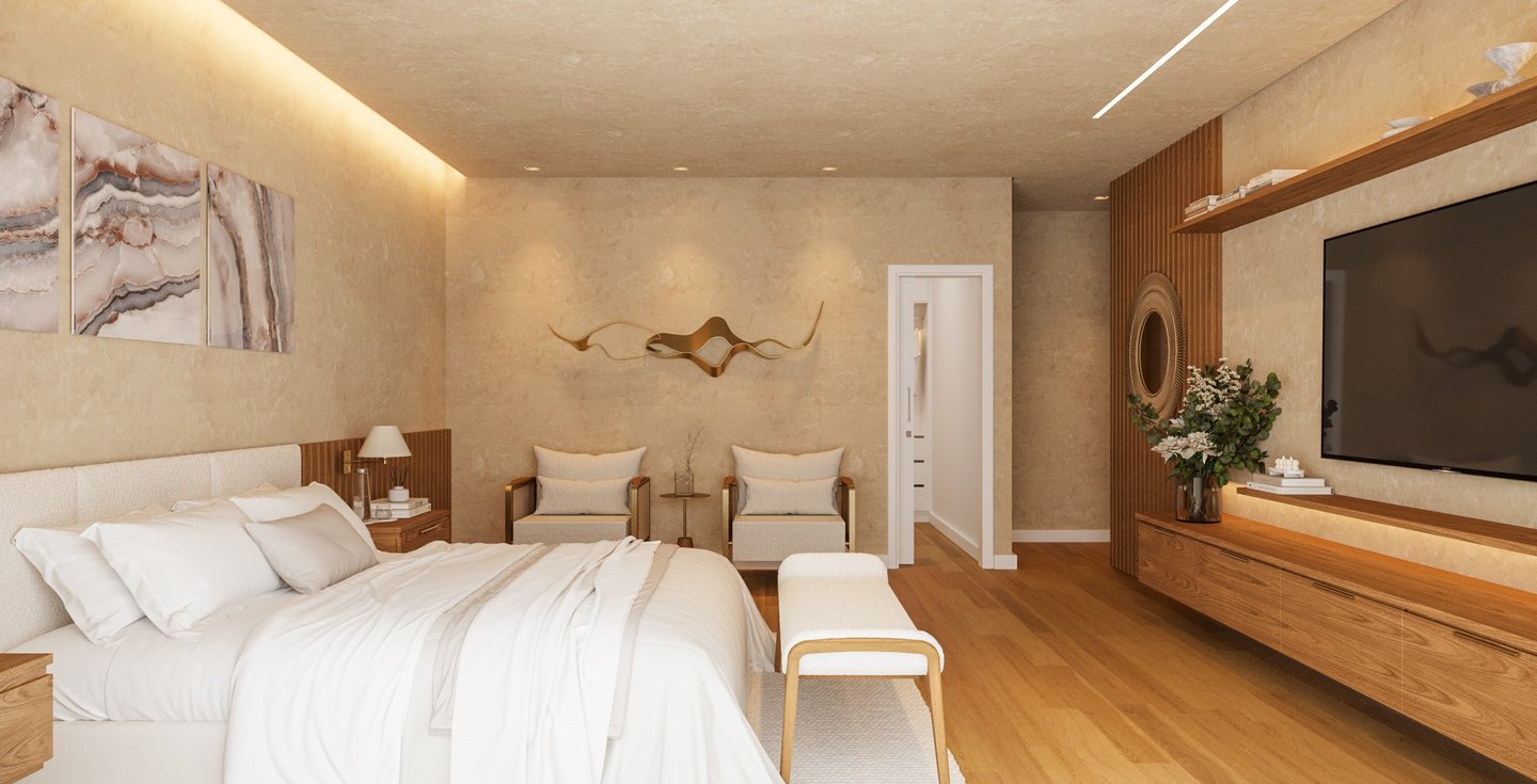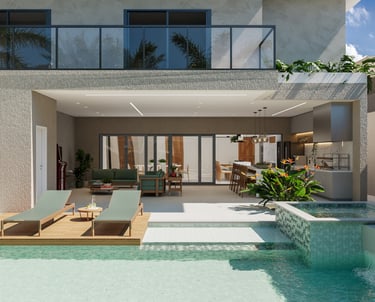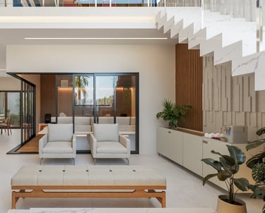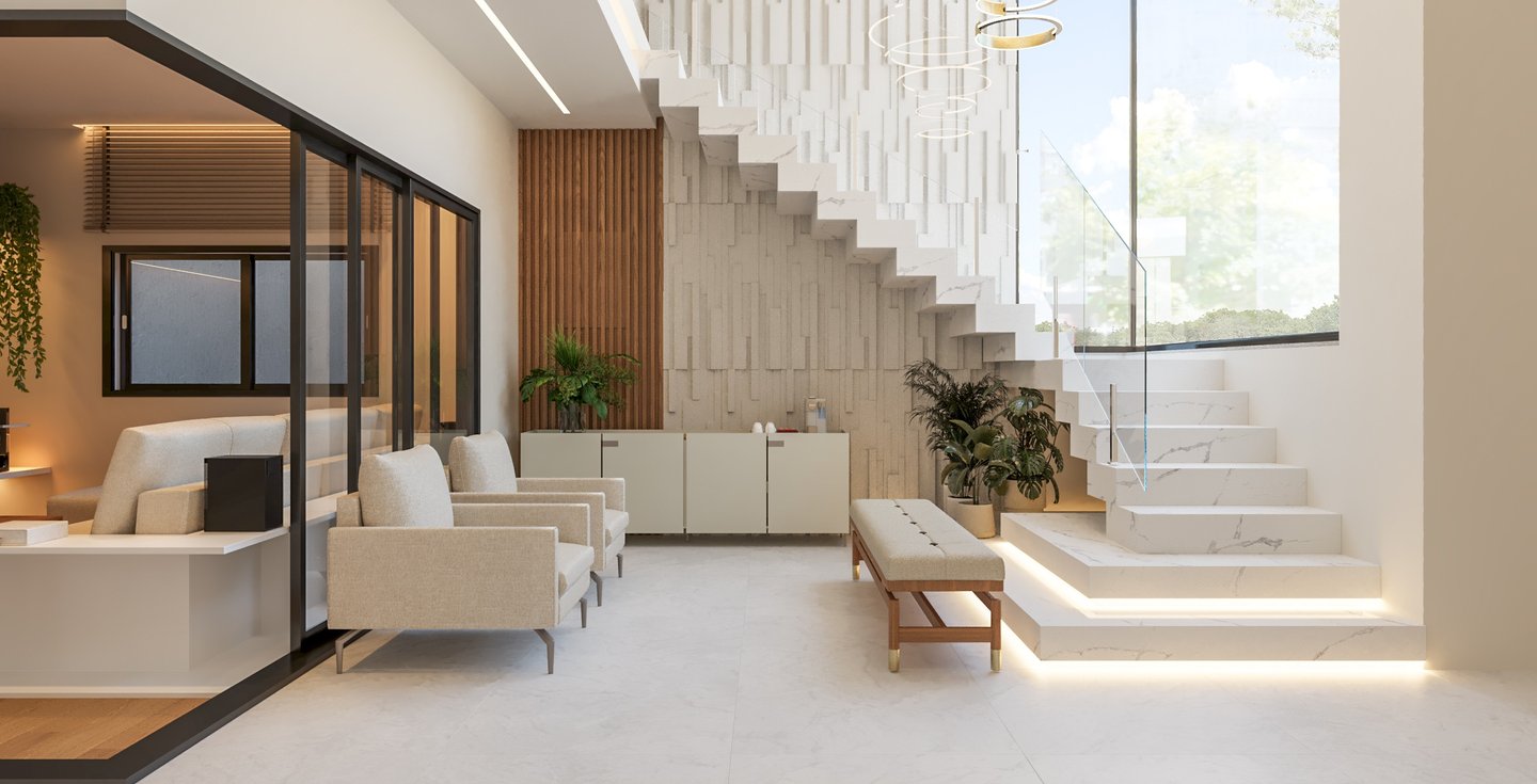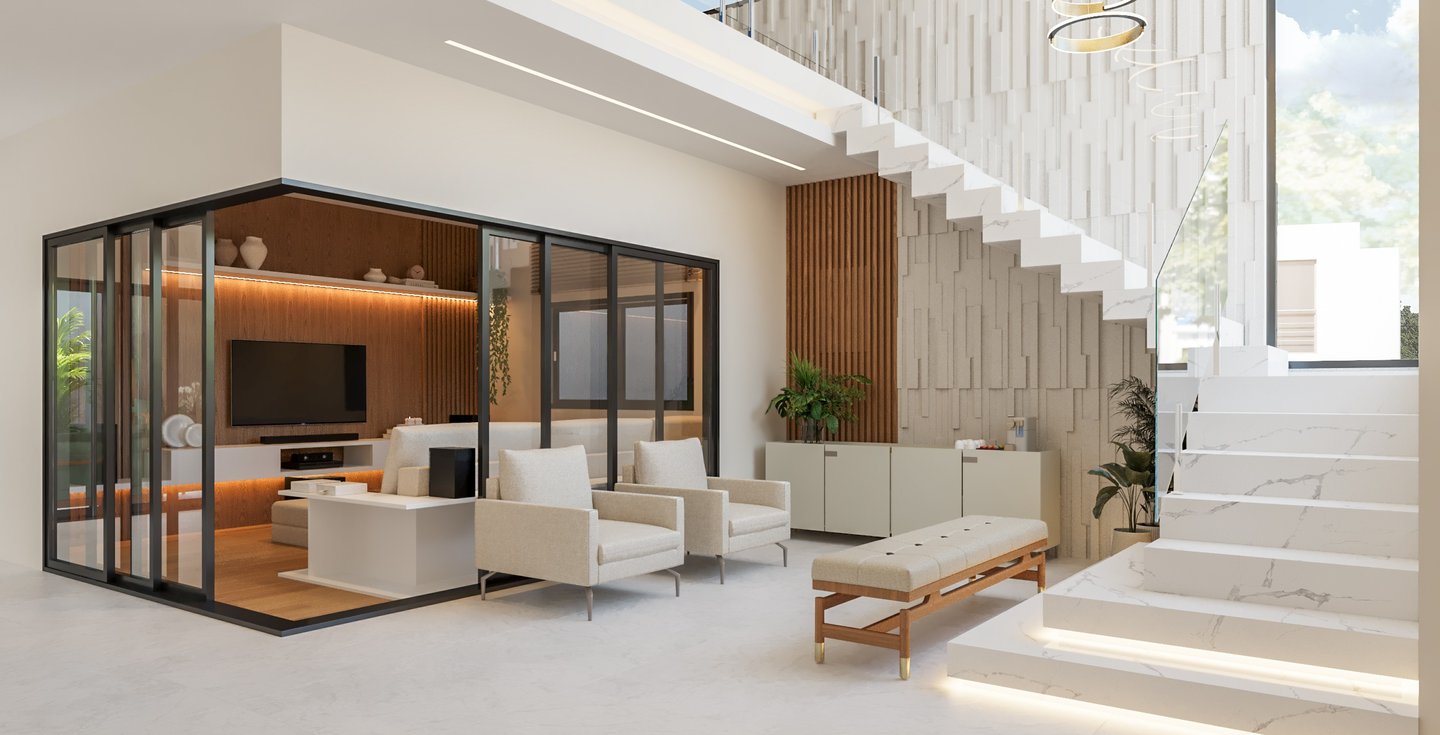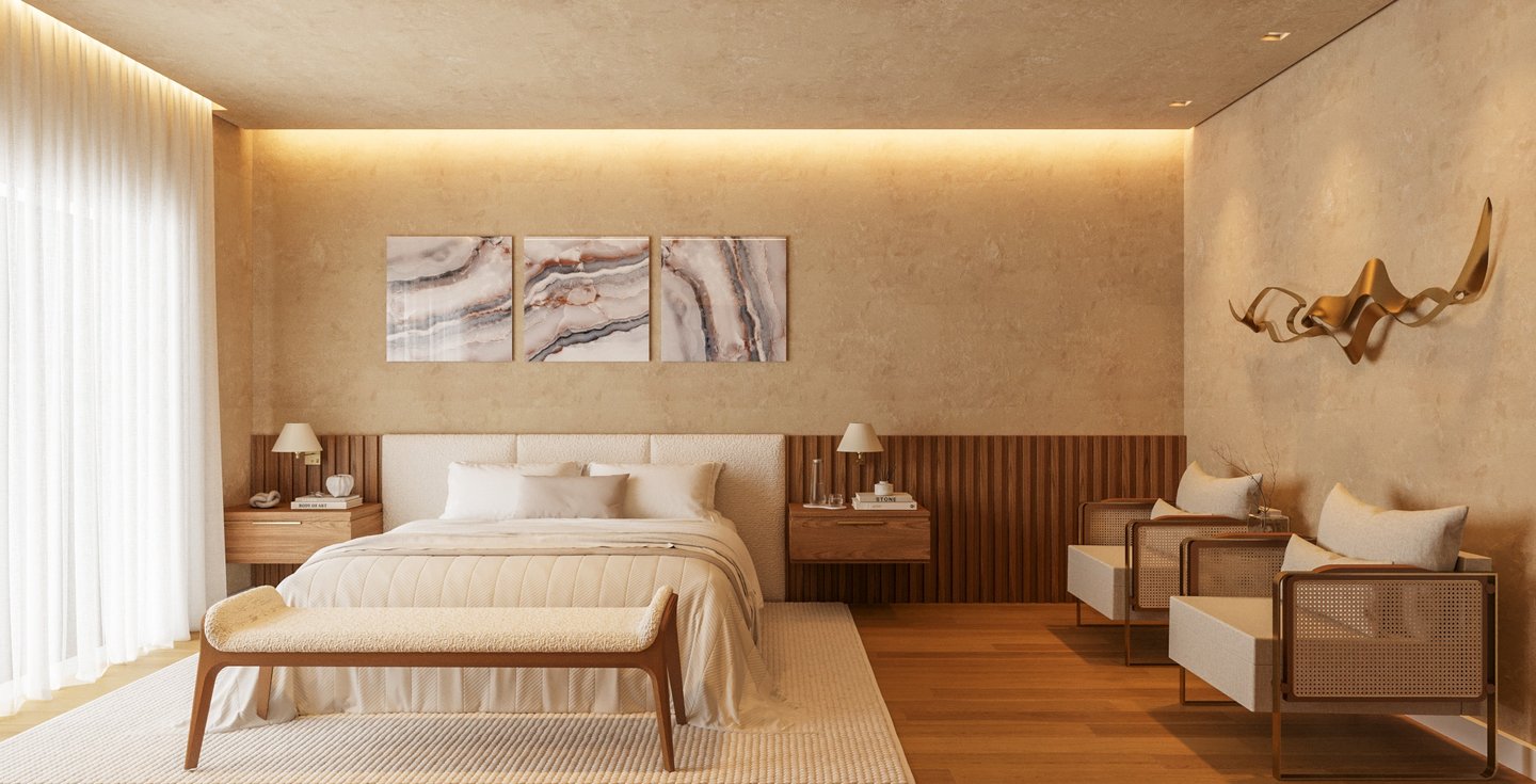 Desejamos uma sala integrada à área gourmet, lavanderia com mobiliário otimizado, despensa ampla, escadaria elegante, espaço de leitura no mezanino e dormitórios cheios de personalidade".