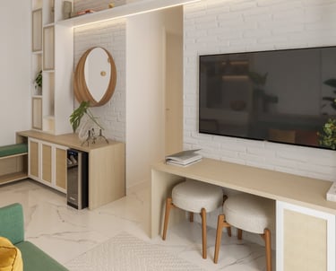 "Adquiri meu primeiro imóvel e quero reformá-lo com um estilo boho, combinado a elementos contemporâneos, práticos e atemporais.