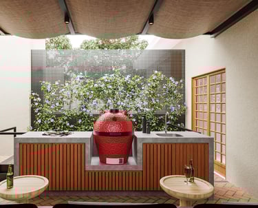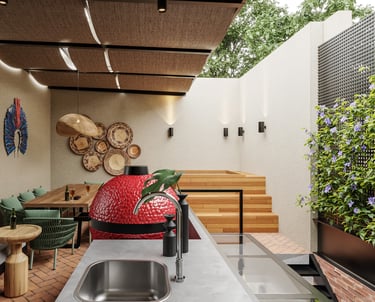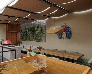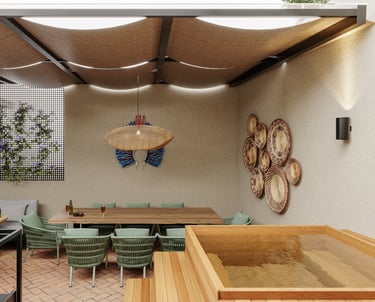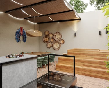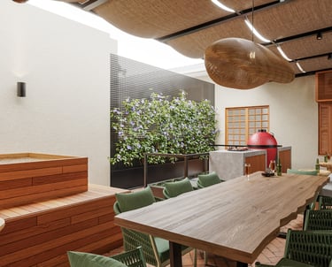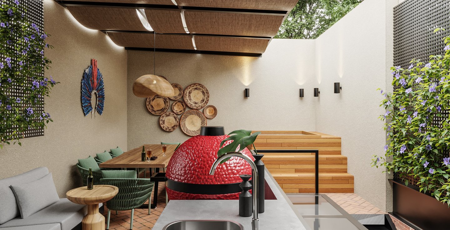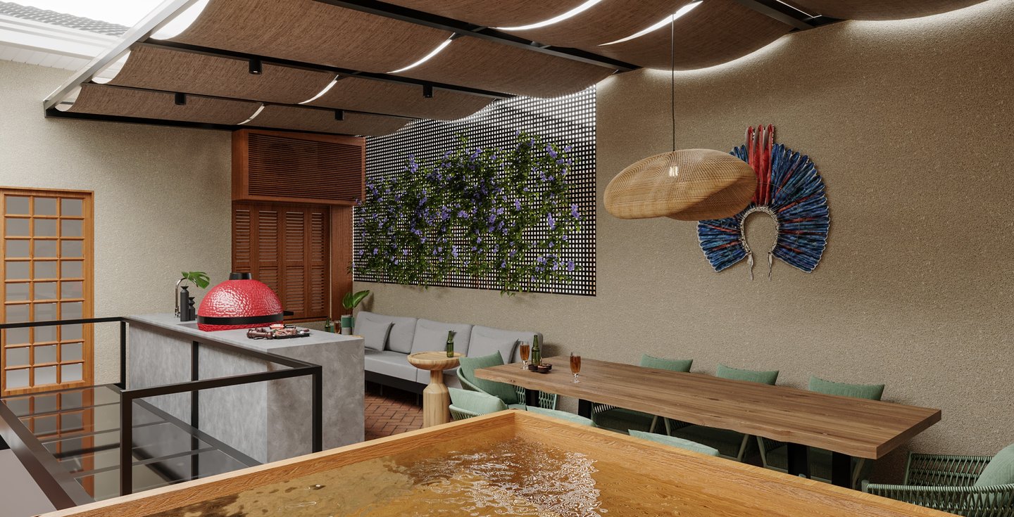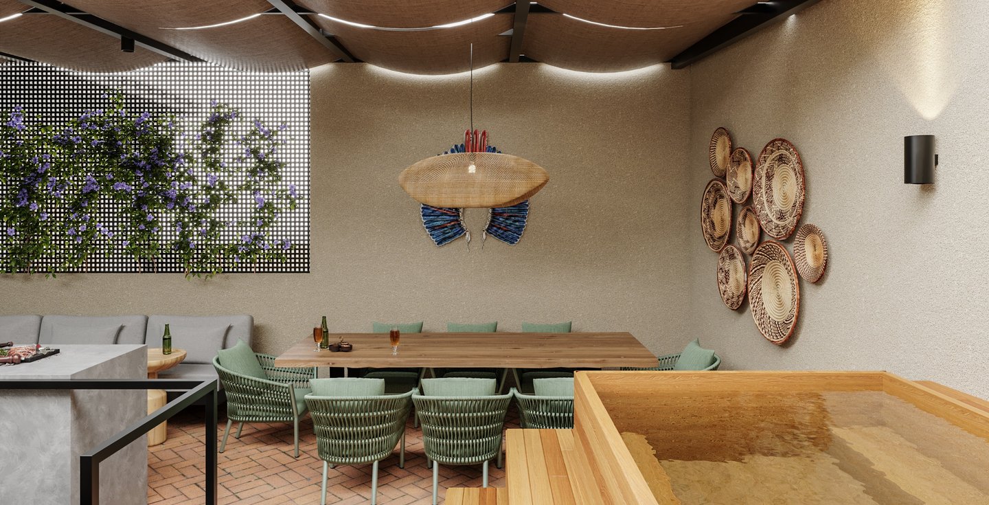 "Queremos reformar o terraço da nossa casa, para comportar uma bancada ampla para preparar churrascos, uma mesa de jantar generosa e adaptar a estrutura para incluir um ofurô.
