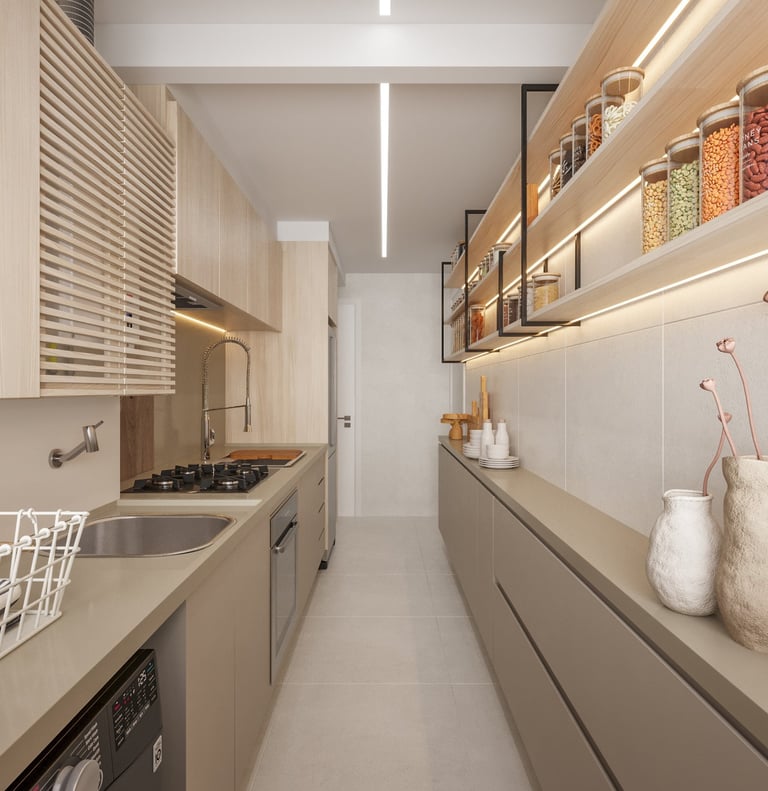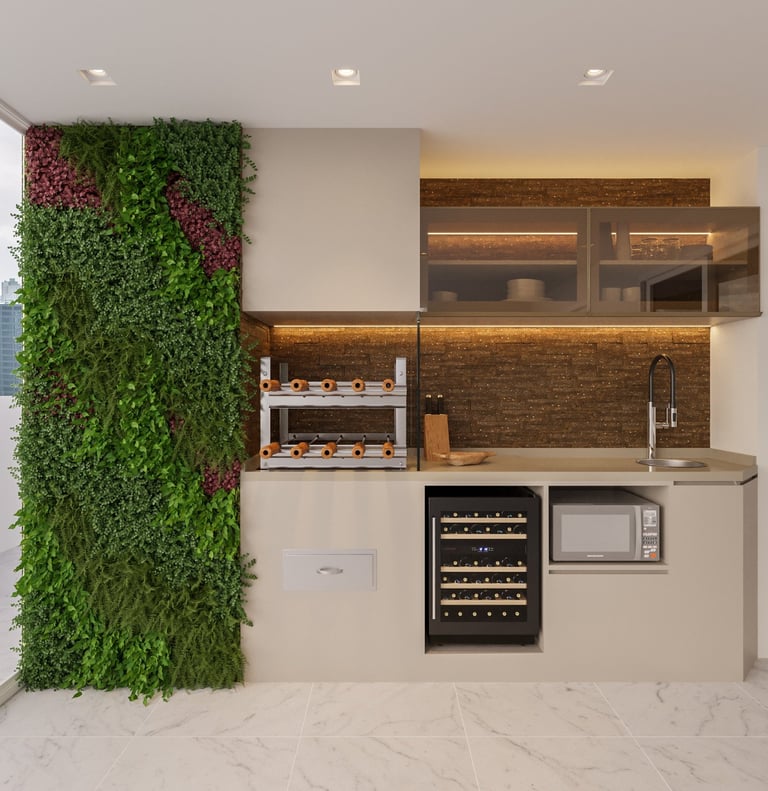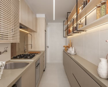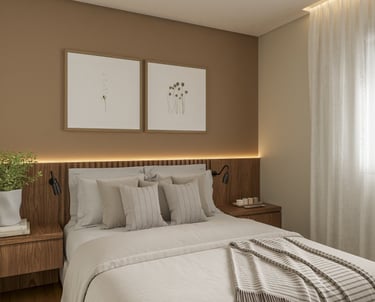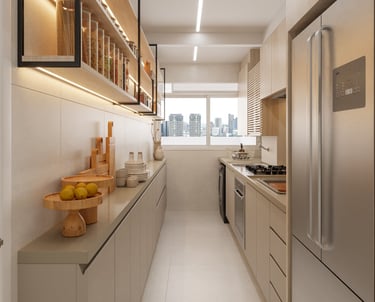 Queremos a cozinha, varanda gourmet e banheiros com novos revestimentos e marcenaria funcional. Na suíte, uma nova cabeceira com mesas laterais, decoração moderna e elegante".